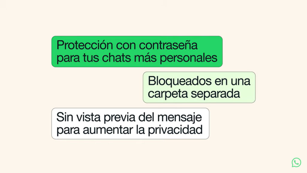 Durante los próximos meses, agregaremos más opciones al bloqueo de chats, como la posibilidad de bloquearlos en dispositivos vinculados y de crear una contraseña personalizada para tus chats que sea distinta de la que usas en el teléfono.