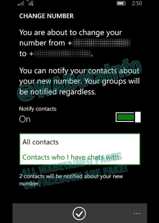 La nueva versión de dicha beta ahora permite elegir una opción que avisa a todos nuestros contactos cuando cambiamos de número. Pero eso no es todo, pues también se puede elegir entre avisarle a todos tus contactos, avisarle sólo a los contactos con los que tienes interacción o conversaciones en la aplicación, así como también se puede decidir no entregarle aviso a nadie acerca de tu nuevo número.