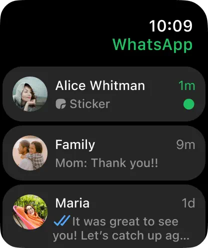 La aplicación también introduce la posibilidad de reaccionar a mensajes con emojis, una experiencia visual mejorada para imágenes y stickers, y una vista ampliada del historial de chat. Meta enfatiza que todas las conversaciones y llamadas mantienen el cifrado de extremo a extremo, garantizando la privacidad del usuario incluso en el entorno de watchOS.