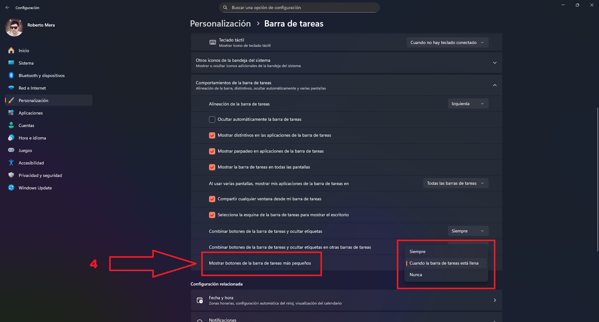 ¿Cómo activar los íconos pequeños de la barra de tareas en Windows 11?