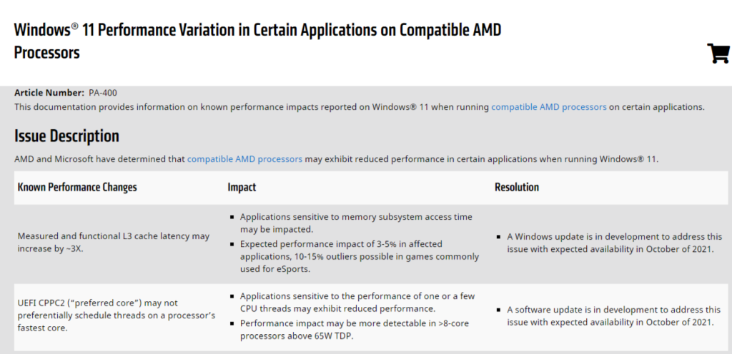 Resulta que ha sido la misma AMD la que ha publicado un reporte que dice que sus chips tienen un problema de rendimiento con Windows 11 que puede resultar en un 15% menos de desempeño que con la versión anterior.