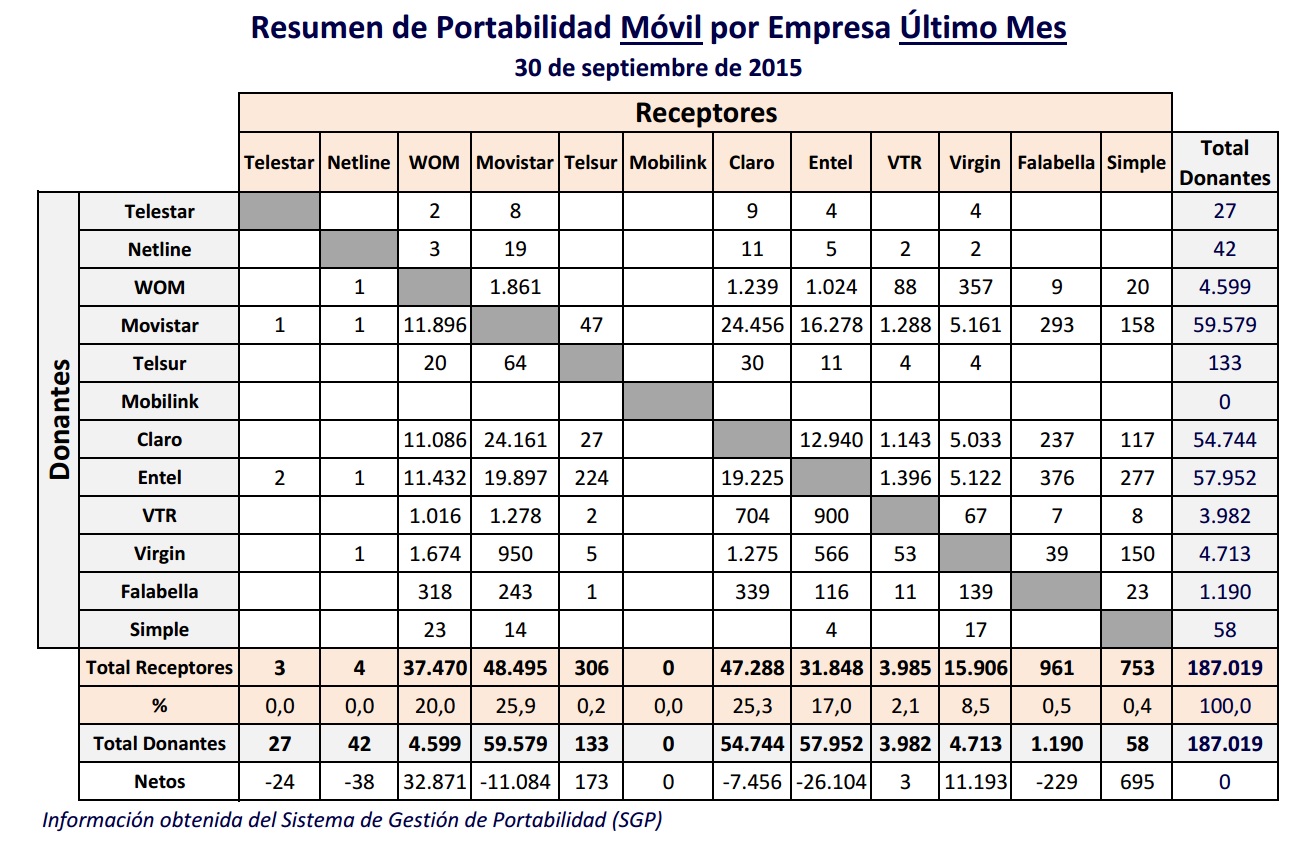 Como podemos ver, WOM ha sido noticia cada mes liderando las cifras de portabilidad numérica. Te recordamos que sólo durante su primer mes de funcionamiento, WOM registró ganancias netas en portabilidad de 22.117 nuevos clientes, mientras que el segundo ganador de clientes en el mes de septiembre fue Virgin Mobile con 15.906 números portados, seguido de Simple Móvil, con 753 nuevas lineas.