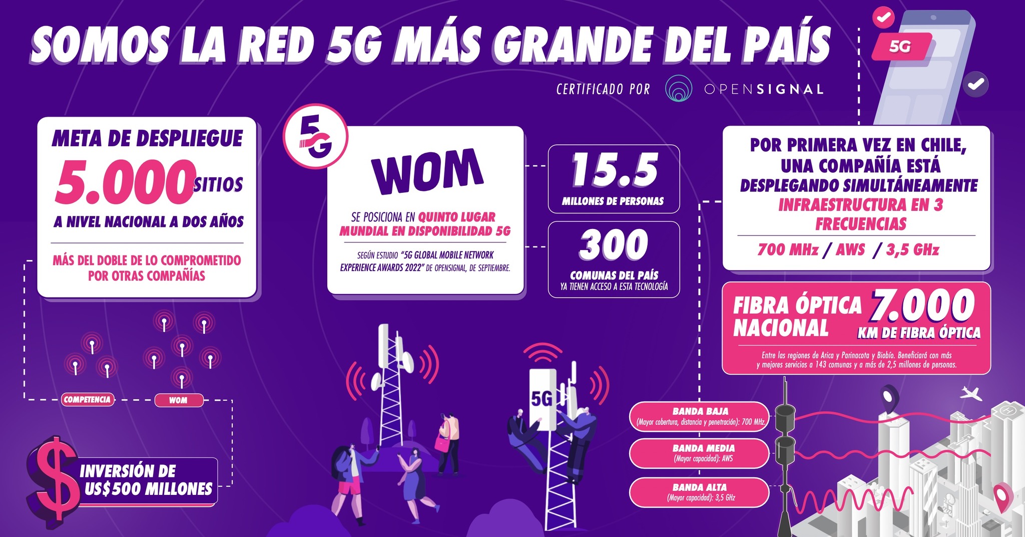 WOM seguirá masificando el despliegue 5G con la misión de alcanzar más de 5.000 sitios a nivel nacional en dos años para así poder conectar a más de 15 millones de personas y más de 300 comunas.