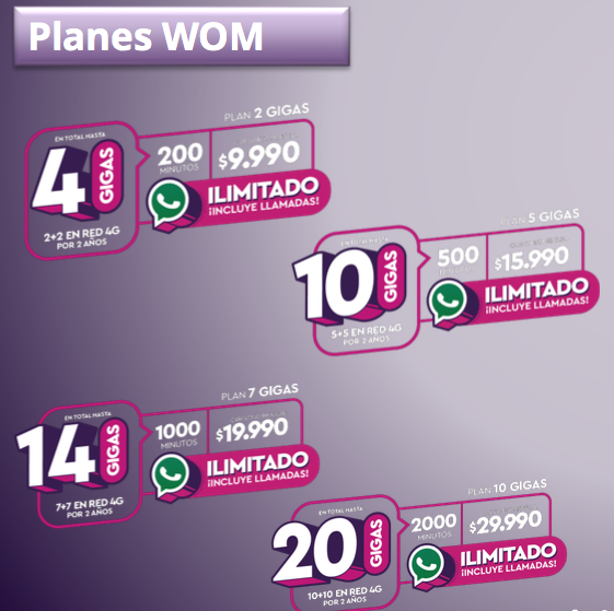 Pero eso no es todo estimado lector, ya que los planes WOM normales también recibirán promoción por dos años y con WhatsApp ilimitado. Vamos con el detalle: