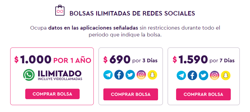 En las gráficas de WOM ahora ya no aparece WhatsApp por ningún lado. Sin embargo, en la web de WOM continúa apareciendo la bolsa de WhatsApp completamente ilimitado por un año por solo $1.000.