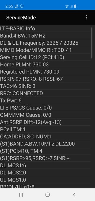 Como podrás apreciar en la captura superior, el equipo estaba conectado a la banda B4 AWS con un ancho de banda de 15MHz, y también estaba conectado a una segunda banda B4 AWS con un ancho de banda de 10MHz, esto es 4G+ Intra-banda.