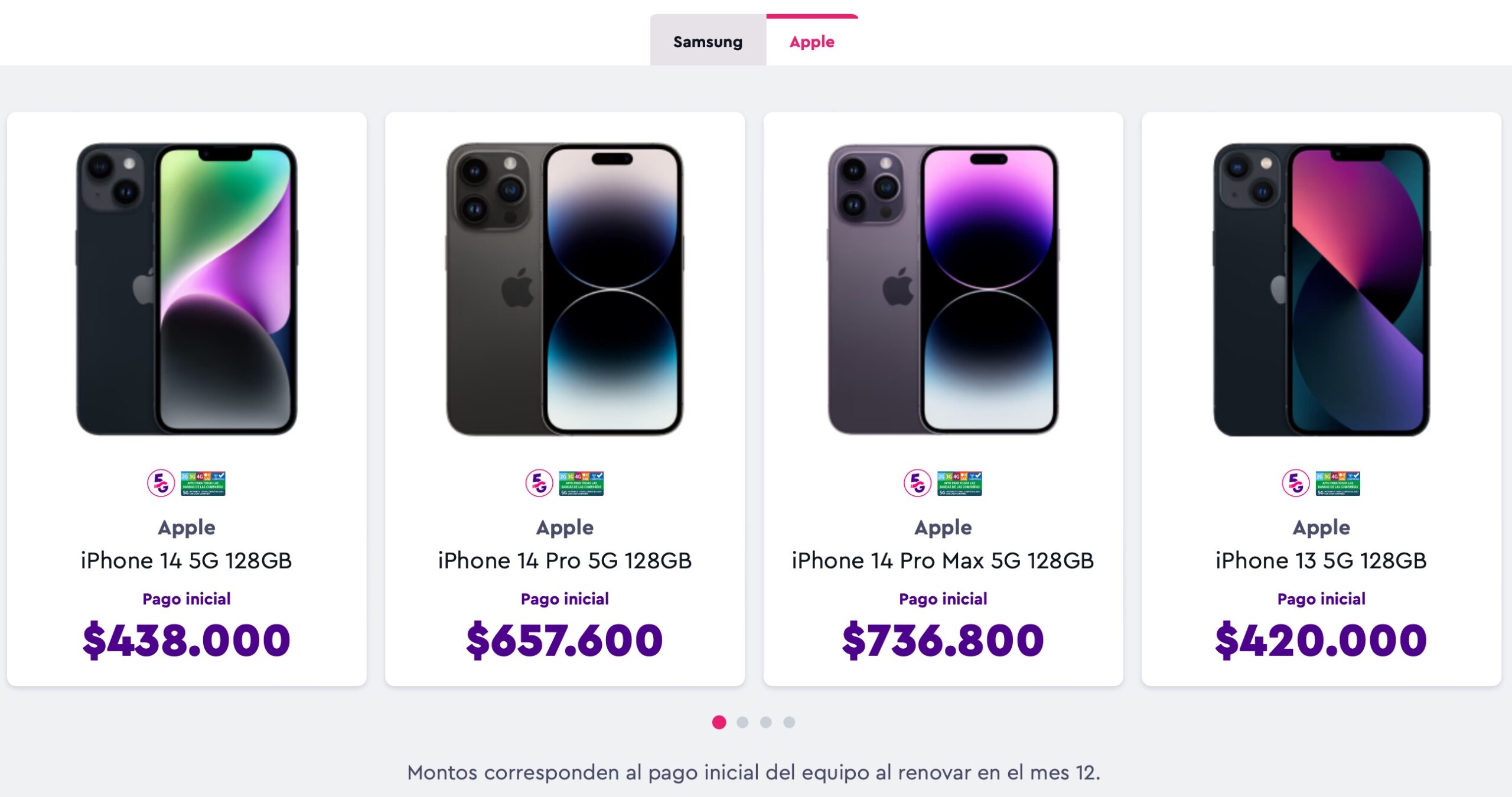 El programa te permitirá elegir una lista de equipos Samsung o Apple pagando el famoso “pago inicial” que consta en pagar las primeras 12 cuotas sin interés con alguna tarjeta de crédito. Pasando los 12 meses, tendrás la opción de devolverlo a WOM y cambiarlo por otro pagando nuevamente un “pago inicial”.