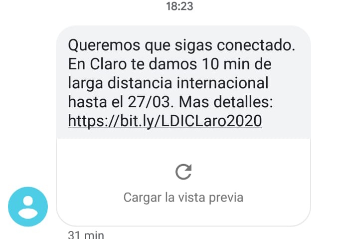 El operador Claro también ha tomado medidas con respecto a la misma situación, ya que, mediante un SMS, la compañía ha estado informado que está regalando 10 minutos de larga distancia internacional para usar en 11 países.