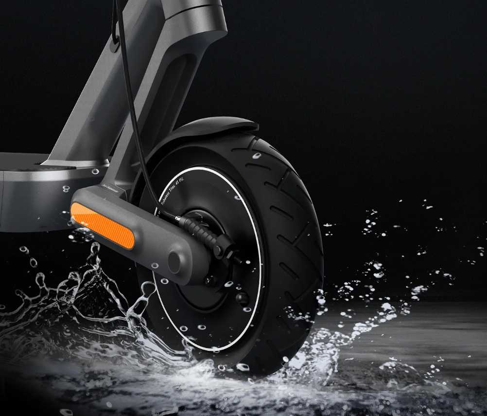 Sus neumáticos son Xiaomi DuraGel de 10 pulgadas. Esas ruedas vienen a prueba pinchazos.