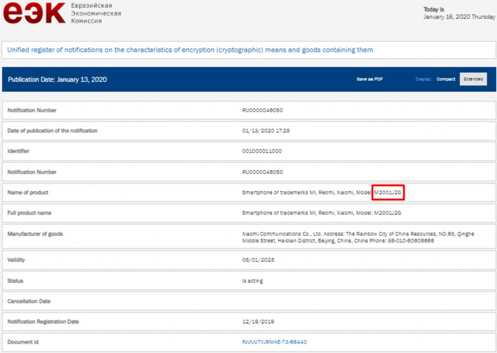 Ahora, el M2001J2E se habría colado por TENAA, otro organismo de la tierra natal de la empresa. En la captura que encabeza esta sección puedes apreciar lo que acabamos de comentar. Y por si todo esto no te fuera suficiente, se detectó una variante del mismo teléfono en la base de datos de la Comisión Económica Euroasiática (CEE) en Rusia.