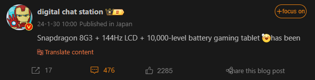 Hoy, la nueva filtración procede de un conocido informador, Digital Chat Station. En un post de Weibo, el insider afirma que la Xiaomi Pad 7 Pro estará equipada con el Qualcomm Snapdragon 8 Gen 3, el procesador más potente a la fecha.