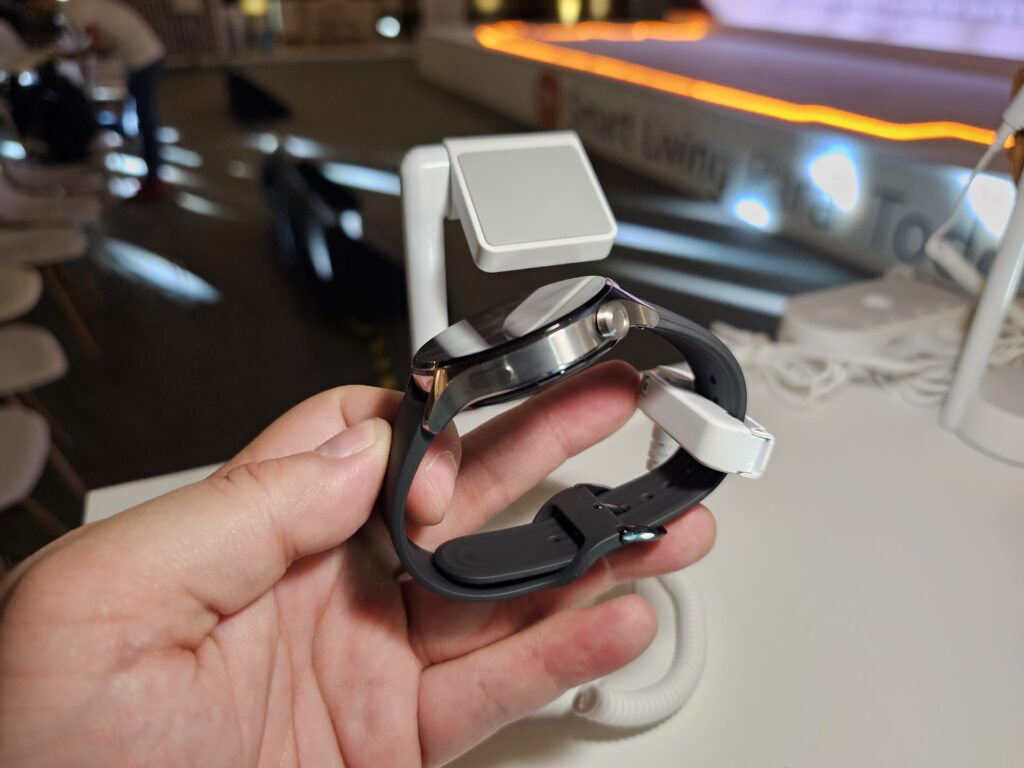 Ha sido fabricado con materiales de primera calidad que ofrecen durabilidad y estilo, cuenta con una pantalla AMOLED de 1.47″, una corona giratoria y un cristal de zafiro resistente a los rayones, que garantiza una larga funcionalidad. Está disponible en dos colores: caja plateada con correa de piel marrón y caja negra con correa de caucho negro.