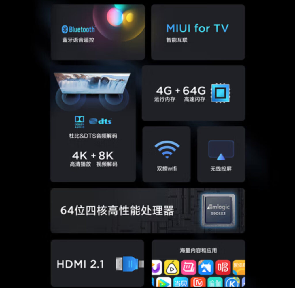 Lamentablemente no se hace ninguna mención a Dolby Vision y Dolby Atmos, lo cual sería una lástima para las características de este dispositivo. Lo que sí se menciona es que viene con MIUI para TV preinstalada, lo que brinda soporte para la aplicación MIJIA y el asistente de voz XiaoAI.