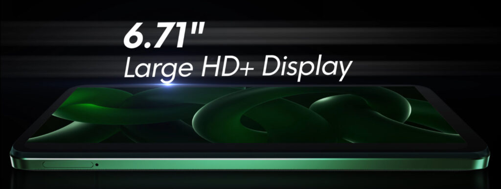 La pantalla es LCD de 6,71 pulgadas a resolución HD+. La tasa de refresco se ubica en unos «clásicos» 60 Hz. La de muestreo táctil se eleva hasta los 120 Hz. El panel tiene una relación de aspecto de 20:9 y una relación de contraste de 1500:1. Viene con protección Panda Glass y un revestimiento oleofóbico.