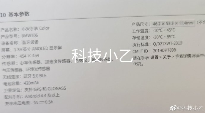 La imagen que acompañan esta sección corresponden al empaquetado del reloj. Allí figura con el número de modelo XMWT06. Su pantalla esférica es AMOLED de 1,39 pulgadas a resolución 454 x 454 píxeles. Estamos ante una versión de 42 milímetros.