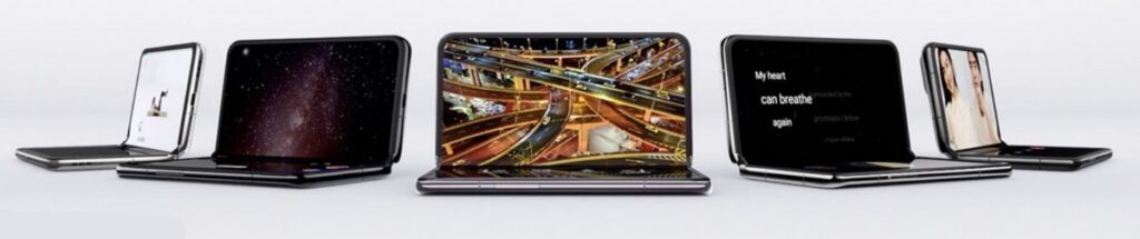La bisagra también permite algo denominado Modo FlexForm. Esencialmente, la bisagra puede sostener las dos mitades en cualquier ángulo entre 50º y 120º, permitiendo que el teléfono actúe como su propio trípode para videollamadas largas o para realizar un timelapse.