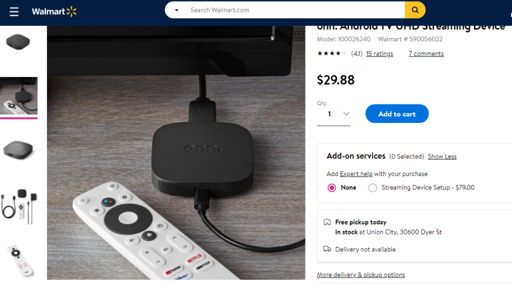 Como podemos ver en la página de Walmart, el TV Box con Android TV oficial tiene un valor de solo USD $29.88, y como es de esperarse, puede reproducir contenido de hasta calidad 4K, contando con características que otros dispositivos más caros no tienen, como la posibilidad del audio Dolby Atmos.
