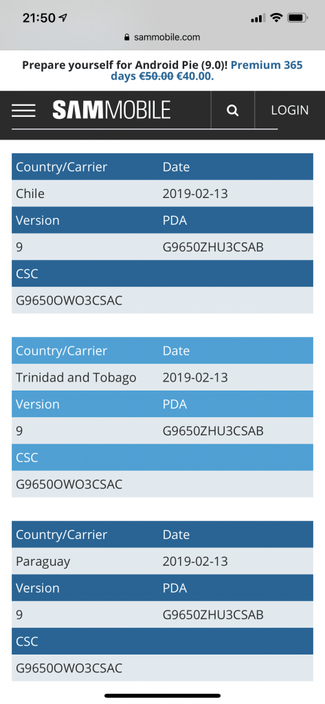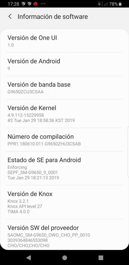 Dicha información también lo ha confirmado el reconocido portal SamMobile quien a través de su sección de Firmwares se puede apreciar que ya está disponible Android 9 Pie para el modelo SM-G9650 que se comercializa en Chile, además de confirmar que también está disponible para Trinidad y Tobago, Paraguay y Bolivia.
