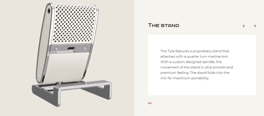 La empresa fue fundada por el mismo creador de los micrófonos Soyuz, y lo que más destaca a primera vista de este micrófono es su diseño, el que nos recuerda a los micrófonos del ayer pero con botones dedicados a pasar archivos, activar o desactivar la cancelación de ruido y el poder reproducir nuestras grabaciones.