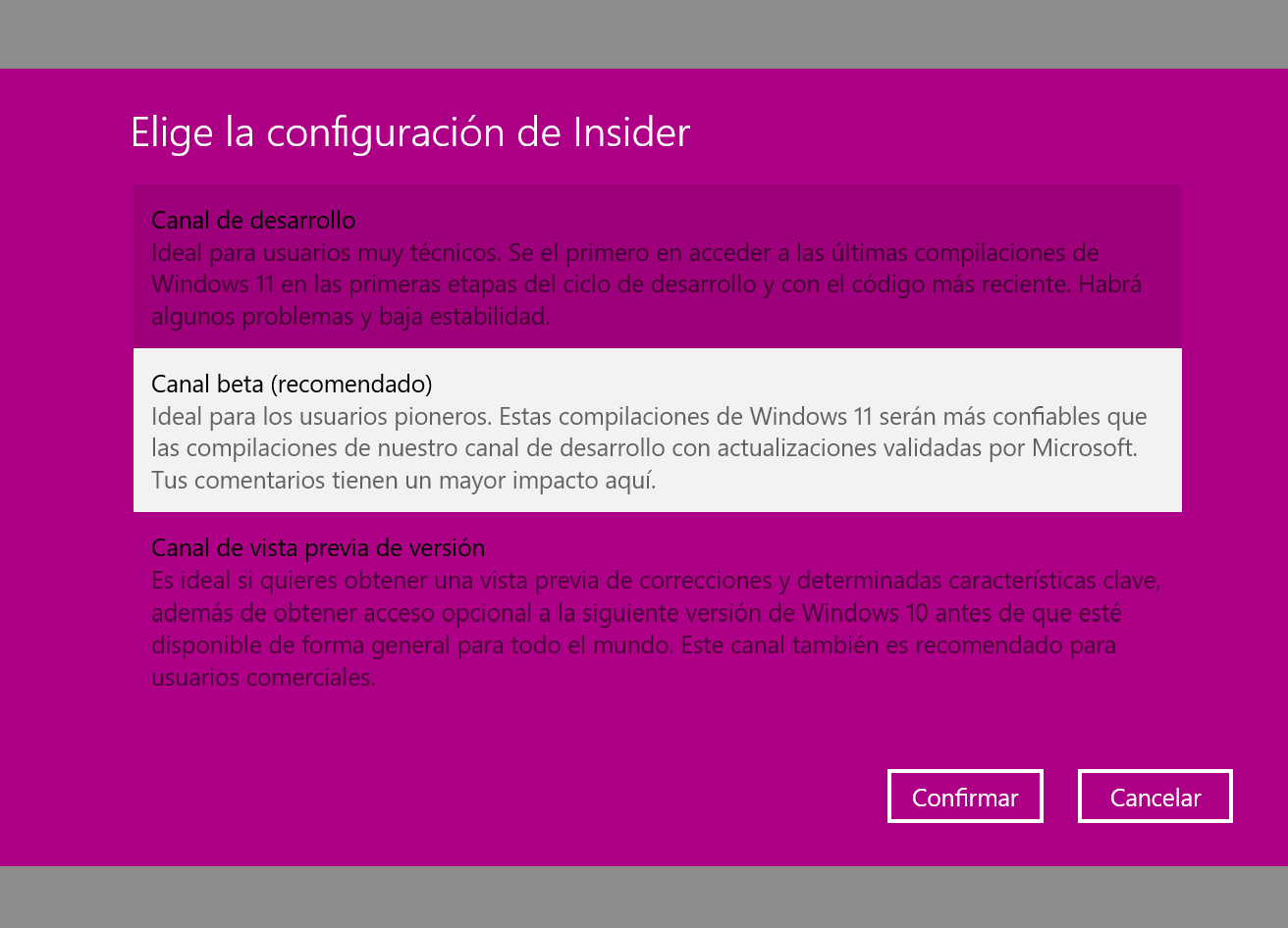 Inicias sesión con tu cuenta de Microsoft y luego el sistema te preguntará a qué canal deseas entrar. Yo en lo personal seleccioné el “Canal de desarrollo”.
