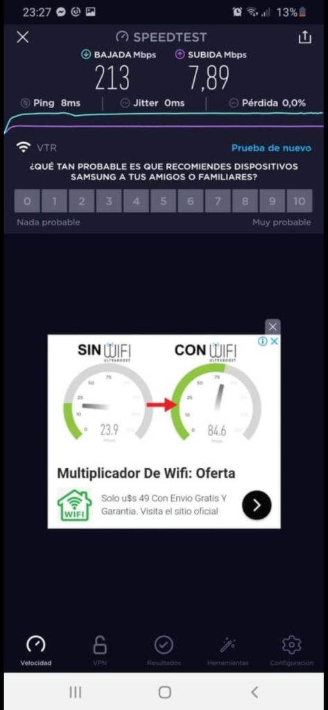 Esta es la velocidad entregada por Wi-Fi con el servicio «Mega 200» de VTR: