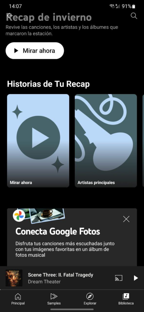 Además, cuenta con integración con Google Fotos, por lo que la aplicación es capaz de juntar nuestras fotos de la galería con las canciones que más escuchamos, lo que sin dudas le da un toque más personal con respecto a las demás aplicaciones.
