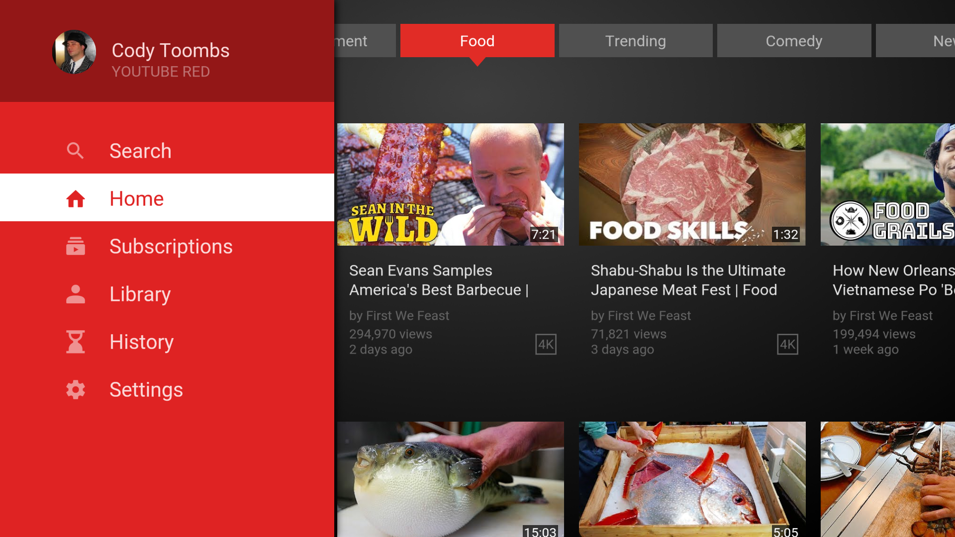 Con la nueva interfaz tendremos fácil acceso a nuestro inicio, suscripciones, historial y configuraciones, con pestañas dedicadas en cada sección para una fácil navegación. La pestaña de búsqueda también ha sido rediseñada, dejando de lado el teclado de Android TV e incorporando una botonera dentro de la aplicación.